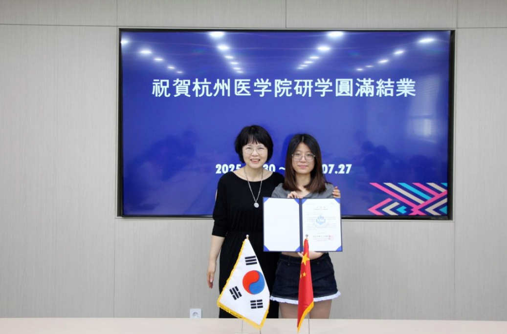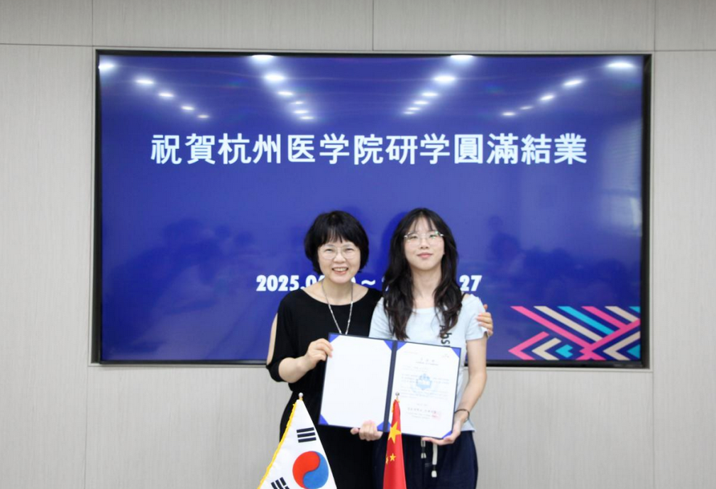 为深入推进高等医学教育国际化发展进程,进一步拓宽学生国际视野,6月30日至7月27日,杭州医学院组织优秀学生代表赴韩国庆云大学开启为期28天的跨国医学文化研学之旅。在此次访学过程中,杭医学子们深度体验韩国医学教育体系,汲取多元视角下的健康理念,于跨文化交流中拓展认知边界,在研修实践中积蓄成长力量。从钱塘潮涌至汉江之滨,虽相隔千里,但师生追求医学真理的热忱始终如一。